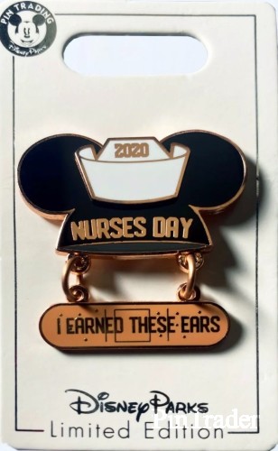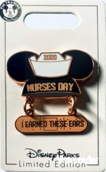 | Mickey has fashioned a Mouseketeer ear hat to celebrate Nurses Day 2020 for this commemorative pin featuring first responder styling and dangling ''I earned these ears'' banner. Magic in the details * Limited Edition of 3,000 * Collectible pin * Features Mouseketeer ear hat with Nurse hat * Commemorates ''Nurses Day 2020'' * Dangling ''I earned these ears'' banner with chain links * Enameled cloisonné * Rose gold finish * Mickey icon pin backs * Disney Pin Trading 2020 backstamp * Comes on card * Part of the Disney Parks Day of Note Pin Collection The bare necessities * Metal / enamel * Pin approx. 1 3/4'' W * Imported |