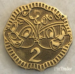 | Given to hotel guests when they check in or traded off the trade board in mystery pirate chests during Pirates of the Caribbean: Legend of the Golden Pins at the Disneyland Resort. |