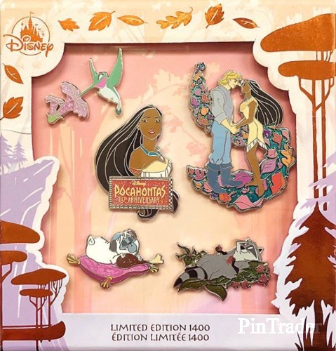 | Collect all the colors of the wind in this limited edition boxed set of five pins celebrating the 25th Anniversary of Disney's Pocahontas. Characters include the title heroine plus John Smith, Meeko, Flit, and Percy. Magic in the details * Limited Edition of 1,400 * Set of five pins * Includes Pocahontas with title banner, Pocahontas with John Smith, Meeko, Flit, and Percy * Enameled cloisonné * Silvertone finish * Mickey icon pinbacks * Illustrated slip case with satin pull tab * Celebrating the 25th Anniversary of Disney's Pocahontas (1995) The bare necessities * Metal / enamel * Pins up to 2 1/4'' H * Imported |