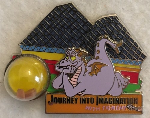 | This Limited Edition trading pin contains pieces of a Figment Audio-AnimatronicsĀ® Figure used in the Journey Into Imagination With Figment attraction at Epcot. |
