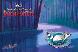 | Experience all the colors of the wind with this D23 Gold and Gold Family-exclusive limited-edition pin celebrating 25 years of Disney's animated classic Pocahontas. Meeko points the way for you to chart your own path and commemorate this milestone silver anniversary with a beautiful silver-finished pin set on a postcard-inspired background. Magic in the details * Created exclusively for D23 Gold and Gold Family Members * Limited Edition of 1,750 * Pin features Meeko * Celebrating the 25th Anniversary of Disney's Pocahontas (1995) * Enameled cloisonné * Commemorative silvertone finish * Mouse icon pinbacks * Official D23 stamp featured on backside of each pin * Comes on decorative printed card featuring lush, full color background art from the film with postcard print on backside * Exclusive to D23 Gold and Gold Family Members The bare necessities * Metal / enamel * Pin approx. 2'' W * Card 4'' H x 6'' W * Imported |