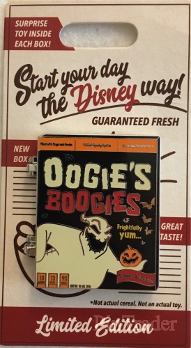 | Filled with pumpkin spice bugs and grubs, our Oogie Boogie Cereal Box Pin features the boastful boogeyman. Served up as part of your complete breakfast collection, this Limited Edition Pin-of-the-Month is frightfully yum! Magic in the details * Limited Edition of 4,000 * Features Oogie Boogie from Tim Burton's The Nightmare Before Christmas * Enameled cloisonné * Hinged pin opens to reveal additional art * Dangling dice on chain * Nickel finish * Mickey icon pinbacks * Disney Pin Trading 2020 backstamp * Comes on card * Pin-of-the-Month in our Disney Parks Cereal Boxes Series The bare necessities * Metal / enamel * Pin approx. 2'' H * Imported |