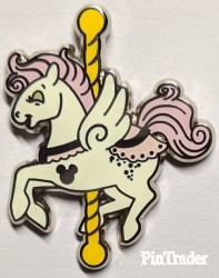 | This pin is part of the Hidden Mickey 6 pin set release on the one year anniversary at Shanghai Disneyland Resort (SDR). The pin design was inspired by the Fantasia Carousel attraction at SDR. This pin set is of multi-hued, winged horses which is what the carousel at SDR has for riders. |
