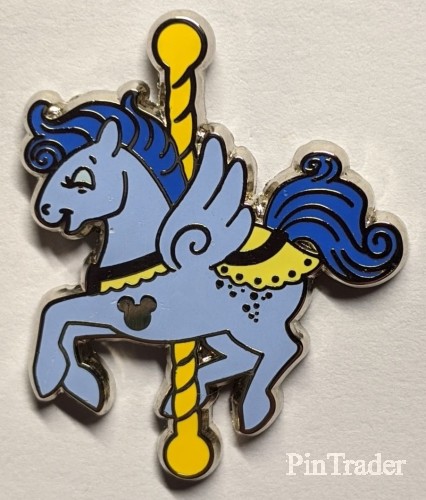 | This pin is part of the Hidden Mickey 6 pin set release on the one year anniversary at Shanghai Disneyland Resort (SDR). The pin design was inspired by the Fantasia Carousel attraction at SDR. This pin set is of multi-hued, winged horses which is what the carousel at SDR has for riders. |