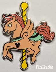 | This pin is part of the Hidden Mickey 6 pin set release on the one year anniversary at Shanghai Disneyland Resort (SDR). The pin design was inspired by the Fantasia Carousel attraction at SDR. This pin set is of multi-hued, winged horses which is what the carousel at SDR has for riders. |