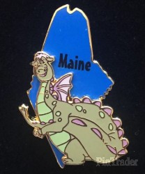 | Each pin in the collection has the state silhouette, the name of the state, and a character on it. The back of the pins are stamped with the state flower. |