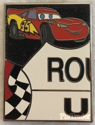 | This is the top-left piece of the puzzle. When all of the pins are put together, they create a Route 66 road sign. |