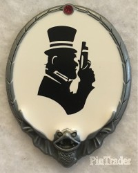 | Two pins per box. The regular version of this pin is on silver metal. The chaser is on gold metal and has a black light feature. |