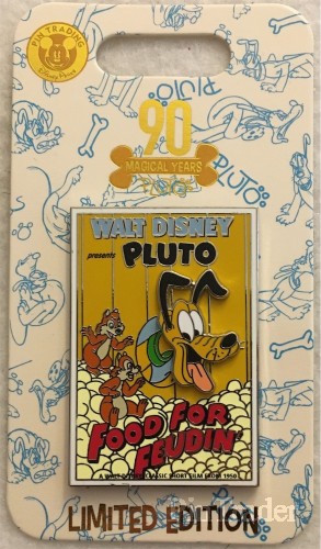 | Join Chip 'n Dale as they help celebrate Pluto's 90th Anniversary with this limited edition pin recreating the original movie poster for Walt Disney's classic cartoon short Food for Feudin' (1950). Magic in the details * Limited Edition of 3,000 * Pin reproduces vintage movie poster art for Food for Feudin' (1950) * Includes Pluto, and Chip 'n Dale * Pluto's head is pin-on-pin feature * Enameled cloisonné * Printed detail * Shiny nickel finish * Mickey icon pin backs * Disney Pin Trading 2020 backstamp * ''90 Magical Years Pluto'' backstamp * One in a series of movie poster pins commemorating Pluto's 90th Anniversary * Pluto first appeared in Mickey Mouse short The Chain Gang originally released August 6, 1930 The bare necessities * Metal / enamel * 3'' H * Imported |