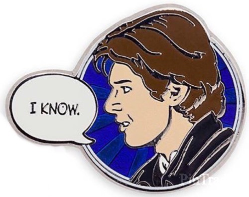| Stick the star-crossed lovers of the Star Wars saga in your personal pin collection. The pop art comic book design duo of Han and Leia makes for a pretty pin pairing. Magic in the details * Set of two pins featuring Han Solo and Princess Leia Organa * Enameled cloisonnè * Silvertone finish * Mickey icon pin backs * Comes on card The bare necessities * Metal / enamel * Pins 1 1/4'' W * Imported |