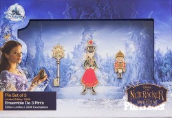 | Unlock the wonder of Disney's new live action fantasy with Disney The Nutcracker and the Four Realms Pin Set. A golden key is among the three pins included in this limited edition set which comes in a decorative window display box. Magic in the details - Limited Edition of 2600 - Set includes three pins: Clara's Key, Clara (in Soldier Uniform), and Nutcracker Doll - Mickey icon pinbacks - Window display box with magnetic closure - Inspired by Disney The Nutcracker and the Four Realms The bare necessities - Pins: Metal / enamel - Box: Cardstock - Pins: up to 2'' L - Box: 4 1/4'' H x 6'' W x 1 1/2'' D - Imported |