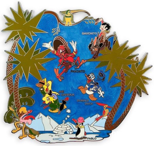 | Celebrate the 75th Anniversary of Walt Disney's animated classic The Three Caballeros with this jumbo limited edition pin. A colorful setting is filled with happy amigos, including Donald Duck, José Carioca and Panchito, to create an unforgettable pin-collector's fiesta! Magic in the details * Limited Edition of 2,000 * Jumbo collectible pin * Includes Donald Duck, José Carioca, Panchito, Pablo, Gauchito, and three very unusual birds! * Enameled cloisonné * Golden finish * Mickey icon pin backs * Disney Pin Trading 2020 backstamp * Boxed in a colorful reproduction of the film's title card * Commemorates the film's 75th anniversary * Walt Disney's The Three Caballeros premiered on December 21, 1944 in Mexico City, followed by general release on February 3, 1945 in the U.S.A. The bare necessities * Metal / enamel * 4 3/4'' H x 5'' W * Box: approx. 6'' x 6'' x 1 1/4'' * Imported |