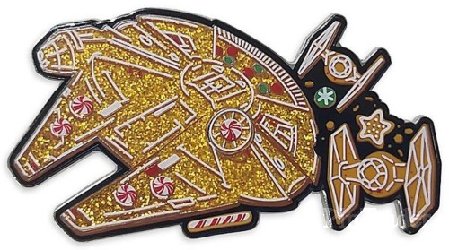 | A golden sugar-coated Millennium Falcon cookie is engaged by gingerbread T.I.E. Fighters on this sweet Star Wars pin for the holiday season. Magic in the details * Millennium Falcon and T.I.E. Fighters holiday design * Enameled cloisonné * Glitter accents * Nickel finish * Disney Pin Trading 2020 backstamp * Pin backs * Comes on card * Makes a great stocking stuffer! * Part of the Star Wars Holiday Collection The bare necessities * Metal / enamel * Approx. 2 1/4'' W * Imported |