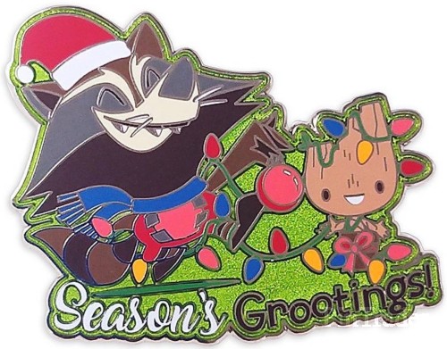| The Guardians of the Galaxy send ''Season's Grootings!'' to Earthlings as Rocket Raccoon drives sleigh pulled by Baby Groot on this holiday pin. Magic in the details * Rocket and Baby Groot holiday design * ''Season's Grootings!'' message * Enameled cloisonné * Glittering accents * Nickel finish * Disney Pin Trading 2020 backstamp * Pin backs * Comes on card * Makes a great stocking stuffer! * Inspired by Marvel's Guardians of the Galaxy * Part of the Marvel Holiday Collection The bare necessities * Metal / enamel * 2'' W * Imported |
