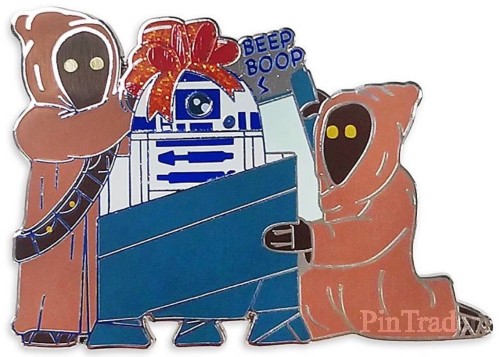 | Jawas giftwrap R2-D2 for a timely droid delivery on this Star Wars holiday pin. Magic in the details * R2-D2 and Jawas holiday design * Enameled cloisonné * Glitter accents * Nickel finish * Disney Pin Trading 2020 backstamp * Comes on card * Part of the Star Wars Holiday Collection The bare necessities * Metal / enamel * 1 2/5'' H x 2'' W * Imported |