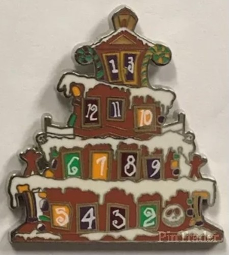 | Each year Disney places a Nightmare Before Christmas themed gingerbread house inside the Haunted Mansion. This set represents the gingerbread houses between 2010 and 2018. Two pins per box. |