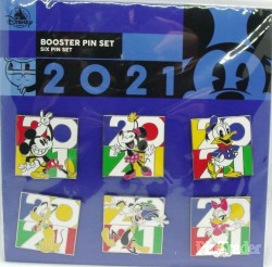 | Launch into the happiest hobby ever with Mickey Mouse 's Pin Trading Booster Set, direct from the Disney Parks, including six sparkling character pins with 2021 logo. Magic in the details * Set of six pins on card * Each features ''2021'' logo * Contemporary design characters include Mickey Mouse, Minnie Mouse, Donald Duck, Daisy Duck, Goofy, and Pluto * Enameled cloisonné * Nickel finish * Disney Pin Trading 2021 backstamp * Mickey icon pin backs * Part of the Disney Parks Dated 2021 Collection The bare necessities * Metal / enamel * Pins up to 1 3/4'' H * Imported |