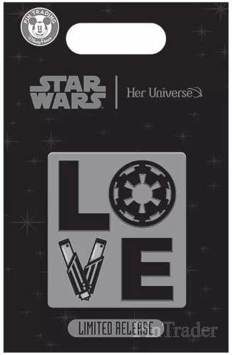 | ''LOVE'' receives a sinister Star Wars makeover on this limited release pin by Her Universe featuring the Imperial Crest and a pair of lightsabers. Magic in the details * Limited Release * ''LOVE'' graphic featuring the Imperial Crest and a pair of lightsabers * Enameled cloisonné * Print elements * Nickel finish * Mickey icon pin backs * Disney Pin Trading 2020 backstamp * Comes on Her Universe branded card * Part of the Star Wars Collection by Her Universe The bare necessities * Metal * 1 1/2'' H * Imported |