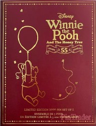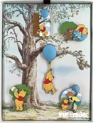 | Commemorate the 55th anniversary of ''Winnie the Pooh and the Honey Tree,'' the first Disney Winnie the Pooh featurette, with this set of five enameled cloisonné pins. Each limited edition pin depicts a favorite scene from the film including Pooh hanging from the blue balloon and Pooh examining his empty honey pot. Magic in the details * Limited Edition of 3,000 * Set of five pins: pin-on-pin Pooh looking inside honey jar; Pooh suspended from balloon by chain; pin-on-pin Pooh and Christopher Robin with balloon; pin-on-pin Pooh on balloon floating away from honey bees; Pooh reaching into honey tree with dimensional balloon * Enameled cloisonné * Goldtone finish * Disney Pin Trading 2021 backstamp * Mickey icon pinbacks * Comes in a presentation case with gold foil detail on cover and film-inspired art inside * In celebration of the 55th anniversary of ''Winnie the Pooh and the Honey Tree'' (1966), the first Disney Winnie the Pooh featurette The bare necessities * Metal / enamel * Up to 1 3/4'' H * Imported |