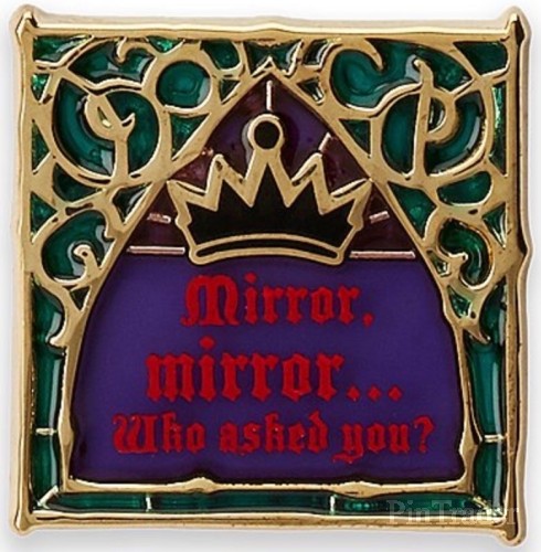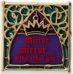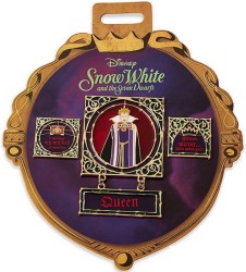 | Your heart belongs to Snow White's stepmother, the wicked Queen, and our three pin set devoted to the darkest of Disney Villains. Golden filgree and enameled cloisonné art make these collector's gems fairest of all. Magic in the details • Enameled cloisonne • Large Queen art pin features dangling title plate • Two small pins feature phrases ''I survived my wicked stepmother'' and ''Mirror, mirror... who asked you?'' • Golden finish and filigree • Mickey icon pinbacks • Comes on illustrated Magic Mirror card • Part of the Disney After Dark Collection The bare necessities • Metal / enamel • Large pin 3'' L w/dangler • Small pins 1'' H & W • Card 6 1/2'' H x 5 1/4'' W • Imported |