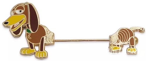 | Slinky Dog is featured with a flair on this unique cloisonné pin with safety-pin back and a printed Toy Story logo backer card. Magic in the details * Two pin design joined by connecting shaft * Enameled cloisonné * Goldtone finish * Safety-pin style backing * Printed Toy Story logo backer card * Inspired by Disney and Pixar's Toy Story * Part of our Pin & Flair Collection The bare necessities * Metal / enamel * Pin: 1 3/4'' W * Imported |