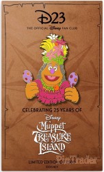 | Cabin Fever got you? Go bananas and celebrate 25 years of Muppet Treasure Island with this beautiful pin created especially for D23 by Disney artist Sofi Ohuri. Featuring Fozzie himself in the role of Squire Trelawney, this D23 Gold and Gold Family Member-exclusive pin is a treasure to behold! Magic in the details * Created exclusively for D23 Gold and Gold Family Members * Limited Edition of 1,500 * Artist: Sofi Ohuri * Fozzie as Squire Trelawney * Exclusive to D23 Gold and Gold Family Members * Official D23 stamp featured on back side of pin * Hard-enamel infill * Goldtone finish * Mickey Mouse icon pin backs * Exclusive collectible backer card * Inspired by 25 years of the rollicking classic, Muppet Treasure Island * One of two pins in a series celebrating the film, each sold separately The bare necessities * Metal / enamel * Approx. 2'' Diameter * Imported |