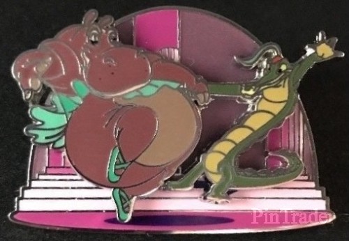 | This variation features a pink background, hyacinth hippo is a red color with light pink tutu and ballet shoes, and Ben Ali Gator is green with a yellow belly and a red feathered hat. Three pins per box. |