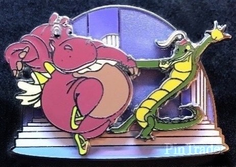 | This variation features a purple background, hyacinth hippo is a red color with light pink tutu and ballet shoes, and Ben Ali Gator is green with a yellow belly and a red feathered hat. Three pins per box. |