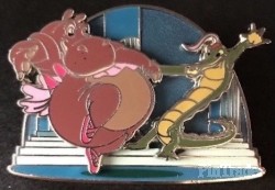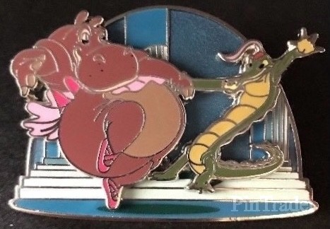 | This variation features a blue background, hyacinth hippo is a red color with light pink tutu and ballet shoes, and Ben Ali Gator is green with a yellow belly and a red feathered hat. Three pins per box. |