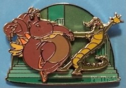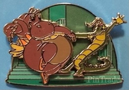 | This variation features a green background, hyacinth hippo is a red color with light pink tutu and ballet shoes, and Ben Ali Gator is green with a yellow belly and a red feathered hat. Three pins per box. |
