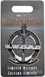 | Pin traders cast a spotlight on their collection with this cloisonné S.W.O.R.D logo. In the Marvel Cinematic Universe, the acronym stands for the Sentient Weapon Observation and Response Department, an organization tasked with responding to terrestrial and extraterrestrial sentient weapons and anomalous threats. Magic in the details * Limited Release * Enameled cloisonné * Nickel finish * Round pinbacks * Disney Pin Trading 2020 backstamp * Comes on card * Inspired by Marvel Studios' WandaVision on Disney+ The bare necessities * Metal / enamel * 2'' H * Imported |