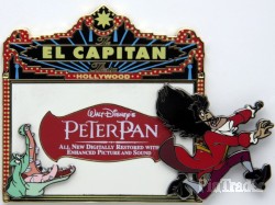 | Released at Disney's Soda Fountain and Studio Store in Hollywood, Ca, this pin commemorates the new digitally restored released of Walt Disney's Peter Pan and features Captain Hook being chased by Tick-Tock the Crocodile. |