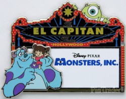 | Released at Disney's Soda Fountain and Studio Store in Hollywood, Ca for the theatrical re-release (first time in 3-D) of Disney/Pixar's Monsters, Inc. Pin features Sulley (James P. Sullivan), Mike Wazowski and Boo. |