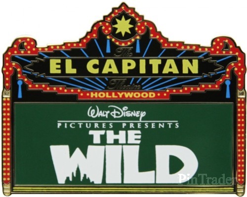 | Released at Disney's Soda Fountain and Studio Store in Hollywood, Ca for the theatrical release of The Wild. Pin says "Walt Disney Pictures Presents The Wild" in white on a dark green background on the familiar El Capitan Marquee style pin. Pin is gold metal, with a dots or pits pattern on the back. Standard DSF backstamp: Disney's Soda Fountain and Studio Store Hollywood Limited Edition 300 (C) Disney China Generic DSF backing card. |