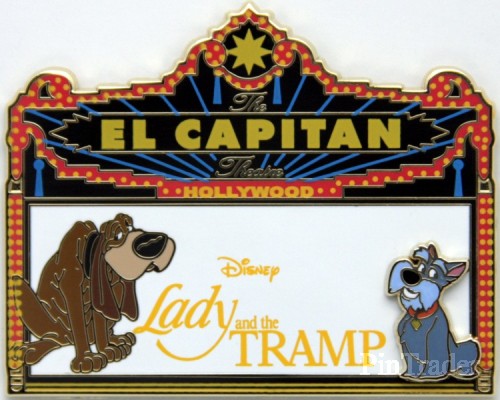| Released at Disney's Soda Fountain and Studio Store in Hollywood, Ca for the theatrical re-release of Disney's Lady and the Tramp. Pin features Trusty and Jock. |