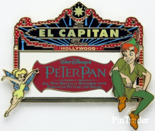 | Released at Disney's Soda Fountain and Studio Store in Hollywood, Ca, this pin commemorates the new digitally restored released of Walt Disney's Peter Pan and features Tinker Bell and Peter Pan. |