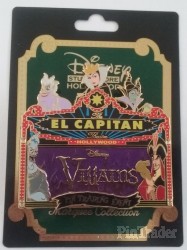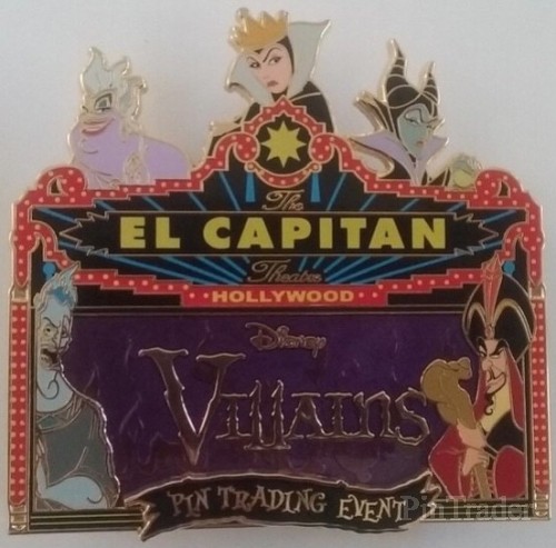 | This color marquee features Ursula, The Evil Queen, Maleficent, Hades, and Jafar. Sold exclusively online to registered guests of the October 8, 2017 Villains Pin Trading Event at the Roosevelt Hotel in Hollywood, CA on September 11, 2017. Leftovers were sold on September 18, 2017. Pickups of the pins occur on October 8, 2017 at the event. |