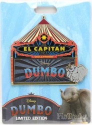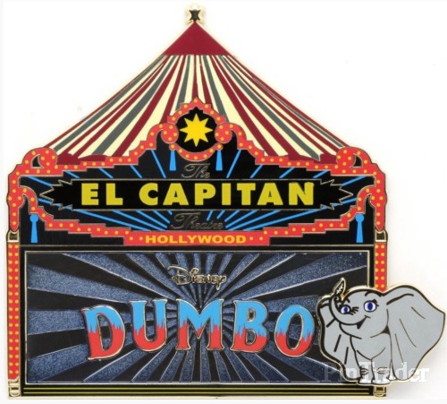 | Disney Studio Store Hollywood Magnificent Pin Trading Event on March 24, 2019 at The Roosevelt Hotel released 15 pins. Dumbo Marquee is 3.45" x 3.08" and includes custom backing card, pin-on-pin, and translucent features. |