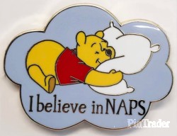 | A sleepy Pooh bear expresses ''I believe in naps'' on this cloud-like cloisonné pin. Let's hope he doesn't dream of Heffalumps and Woozles again! Magic in the details * Winnie the Pooh pin * ''I believe in naps'' text * Enameled cloisonné * Nickel finish * Mickey Mouse icon pin backs * Comes on Disney Collection backer card * Inspired by Disney's The Many Adventures of Winnie the Pooh (1977) * Part of our Pin & Flair Collection The bare necessities * Metal / enamel * Pin 1 3/4'' W * Imported |