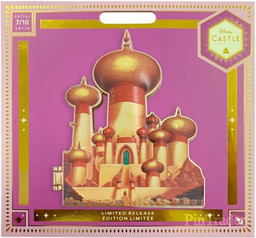 | Our Disney Castle Collection soars to a whole new world with this limited release cloisonné pin of Princess Jasmine's Agrabah Palace as depicted in Disney's Aladdin. Open the hinged pin to reveal a collage of interior settings for a collector's wish come true. Magic in the details * Limited Release * Jasmine's Agrabah Palace art * Authentic to film design as seen in Disney's Aladdin (1992) * Large hinged pin * Dimensional, bas relief front * Open to reveal collage of interior settings * Printed artwork * Golden finish * Mouse icon pinbacks * The Disney Castle Collection is a series of 10 releases celebrating the storied spaces of our most beloved heroines. Live in magic by collecting them all! * Seventh of 10 in the Series * Comes on card with foil accents * Part of the Disney Castle Collection, each item sold separately The bare necessities * Metal * Approx. 3'' H x 4'' W * Imported |