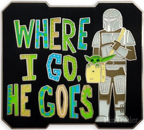 | ''Where I go, he goes.'' Fellow collectors are sure to follow the owner of this limited release pin inspired by Star Wars: The Mandalorian, now streaming on Disney+. Features Grogu and The Mandalorian in a bonding pose. Magic in the details * Limited Release * Art includes Grogu (a.k.a. ''the Child,'' a.k.a ''Baby Yoda'') with The Mandalorian * ''Where I go, he goes'' text * Enameled cloisonné * Nickel finish * Disney Pin Trading 2021 backstamp * Star Wars logo backstamp * Comes on Star Wars: The Mandalorian card * Inspired by Star Wars: The Mandalorian, now streaming on Disney+ * Part of our Pin & Flair Collection The bare necessities * Metal / enamel * Approx. 1 1/2'' H * Imported |