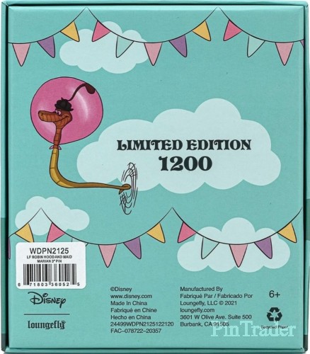 | Robin Hood swings into action to save Maid Marian for Loungefly’s Robin Hood and Maid Marian Pin. This 3-inch tall enamel pin has Robin Hood and Maid Marian swinging on a rope, bringing the scene to life for your collection! Add Robin Hood and Maid Marian to your Disney pin collection with the Robin Hood and Maid Marian Pin. Enamel pin features glitter enamel fill details with gold colored hardware and swinging parts. Signature Loungefly/Funko crown pattern debossed into the back of the pin indicates the limited edition, 1,200-piece count. Collectible enamel pin is 3-inches tall. |