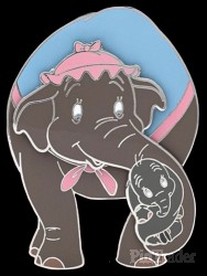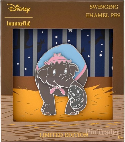 | A Modern Pinup exclusive limited edition pin from Loungefly. Features Baby Dumbo in his mother's trunk. Mrs Jumbo is wearing her circus attire. • Silvertone finish • 3″ X 2.5″ • Box is 6″ X 5″ • Enamel • Mrs Jumbo's head slides left and right • Disney backstamp • Loungefly crown backstamp • Limited Edition 600 |