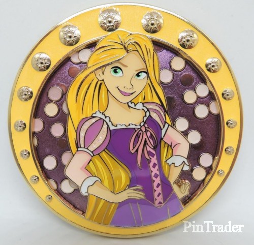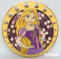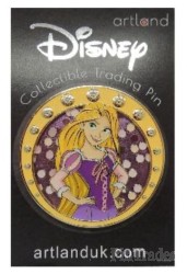 | Artland - Neo Nouveau - Rapunzel This pin shows Rapunzel (Tangled) in her classic purple and pink dress. Her hands are on her hips and she is looking directly at you. The pin is round with embellishment in the yellow frame of gold suns/stars. The background is purple and hints at the lantern scene in the movie. These beautiful additions to the Neo Nouveau collection by artist Masey feature both pearlescent, glitter and matte elements as well as pin on pin design. Each character in this collection is bordered in nouveau style with something unique to them. This Rapunzel pin features royal sunbursts in the border with a pearlescent back. Rapunzel is standing tall and confident in her purple and pink dress which has glitter shoulder detailing. Artist: Masey Size: 3 1/4" Edition Size: 300 Comes with backing card as certificate of authenticity and pin number stamped on the rear of the pin Pin size: 3.25" in diameter Released by Pulse Gallery in the UK (£39). |
