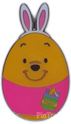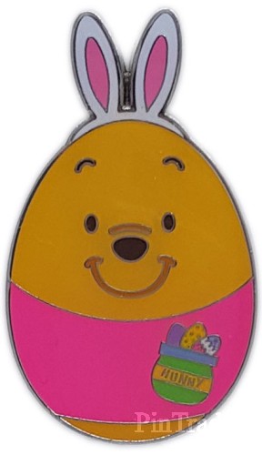 | This is one of 15 pins from the set of mystery box pins from Hong Kong Disneyland for Easter 2018. Each box contains 5 randomly selected pins. Each pin is about 1.5" high. This pin is Winnie the Pooh the brown bear in his easter uniform. The top part of the egg has white/pink bunny ears. below it the head of pooh is shown, it turns over into a pink banner with a Pot of Hunny with easter eggs inside. The back of the pin has one pin back at the top, a box with the Disney Pin Trading logo below it. A larger rectangle box with Hong Kong Disneyland logo with castle, and last box below it is (c) Disney. The FAC is along the left side edge. 020070-17363 Five pins per box. |