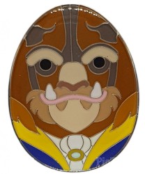 | This is one of 15 pins from the set of mystery box pins from Hong Kong Disneyland for Easter 2018. Each box contains 5 randomly selected pins. Each pin is about 1.5" high. This pin is Beast from Beauty and the Beast. The egg is mostly brown like the head of the beast. He is wearing his gala outfit in blue/yellow/white. The back of the pin has one pin back at the top, a box with the Disney Pin Trading logo below it. A larger rectangle box with Hong Kong Disneyland logo with castle, and last box below it is (c) Disney. The FAC is along the left side edge. 020070-17363 Five pins per box. |