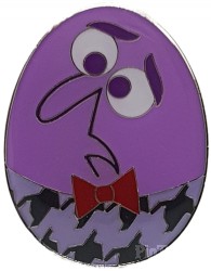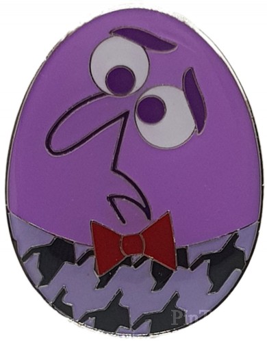 | This is one of 15 pins from the set of mystery box pins from Hong Kong Disneyland for Easter 2018. Each box contains 5 randomly selected pins. Each pin is about 1.5" high. This pin is Fear from Inside Out. The top of the egg is dark pink, with the face of fear on it, below his head ared bow is shown and below that the pink/black trouser. The back of the pin has one pin back at the top, a box with the Disney Pin Trading logo below it. A larger rectangle box with Hong Kong Disneyland logo with castle, and last box below it is (c) Disney. The FAC is along the left side edge. 020070-17363 Five pins per box. |