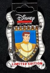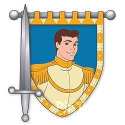| This pin features Prince Charming from Walt Disney's "Cinderella." A sword is at the left of the pin and the banner (tapestry) depicts Prince Charming. |