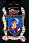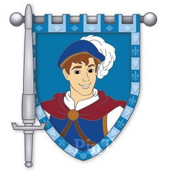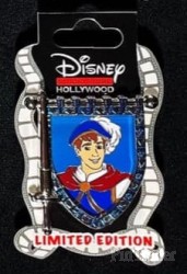 | This pin features The Prince from Walt Disney's "Snow White and the Seven Dwarfs." A sword is at the left of the pin and the banner (tapestry) at the right depicts The Prince. |