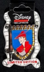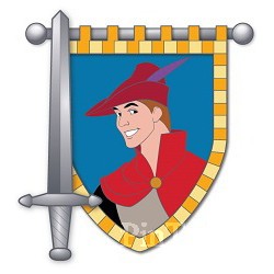 | This pin features Prince Phillip from Walt Disney's "Sleeping Beauty." A sword is at the left of the pin and the banner (tapestry) at the right depicts Prince Phillip, wearing his forest clothes. |